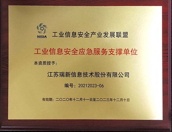 本次研討會精彩紛呈,亮點多多,成果豐碩。在這次會議上,江蘇瑞新作為第三批工業(yè)信息安全應(yīng)急服務(wù)支撐單位被授牌。未來我司將繼續(xù)在工業(yè)互聯(lián)網(wǎng)安全領(lǐng)域繼續(xù)發(fā)揮自身的技術(shù)專長,為用戶提供優(yōu)質(zhì)的產(chǎn)品及服務(wù)。