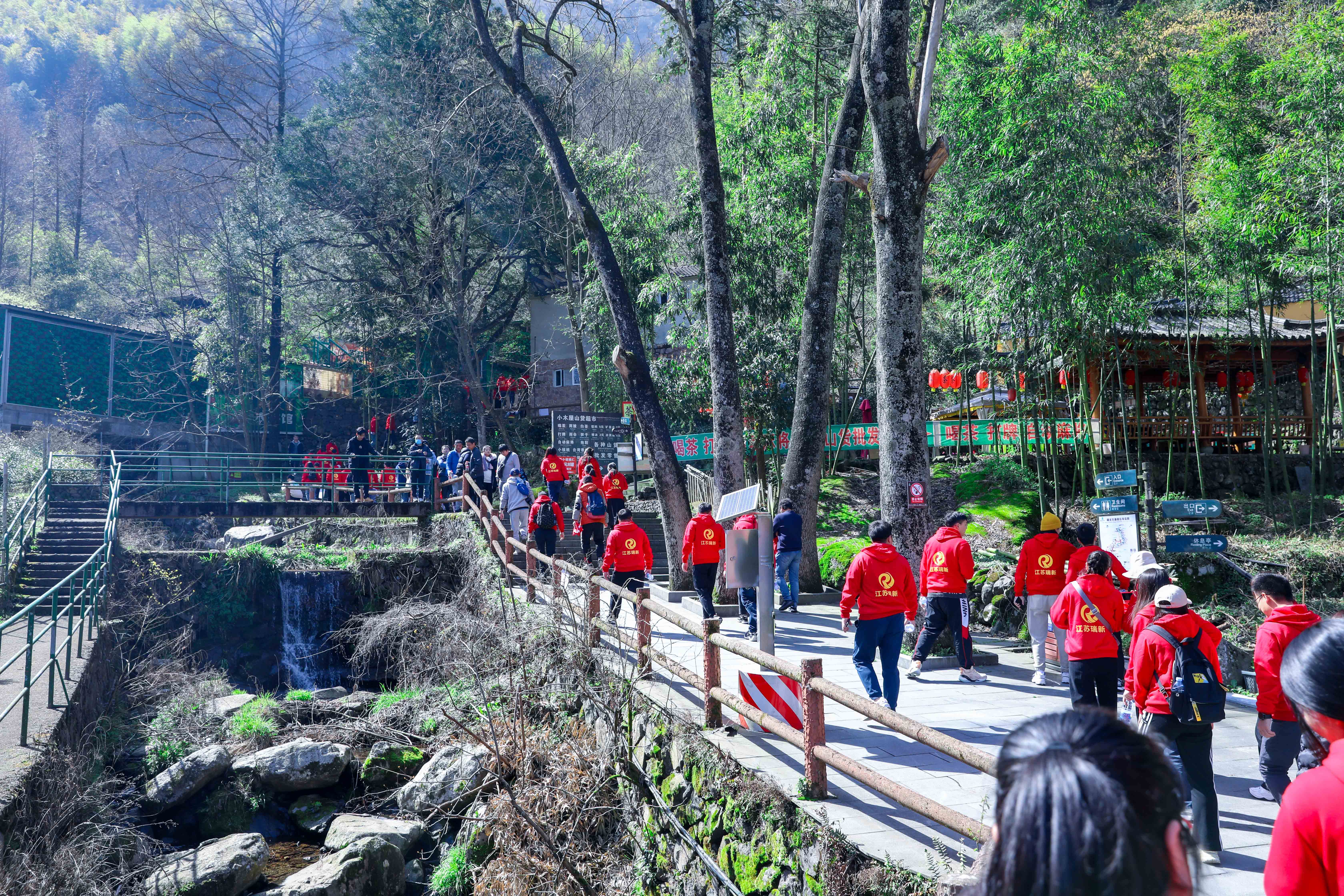 ? 3月26日,江蘇瑞新全體員工游覽藏龍百瀑和余村,沿著習(xí)近平總書記走過(guò)的“兩山”綠道步入綠水青山深處,參觀“兩山”理論發(fā)源地。
