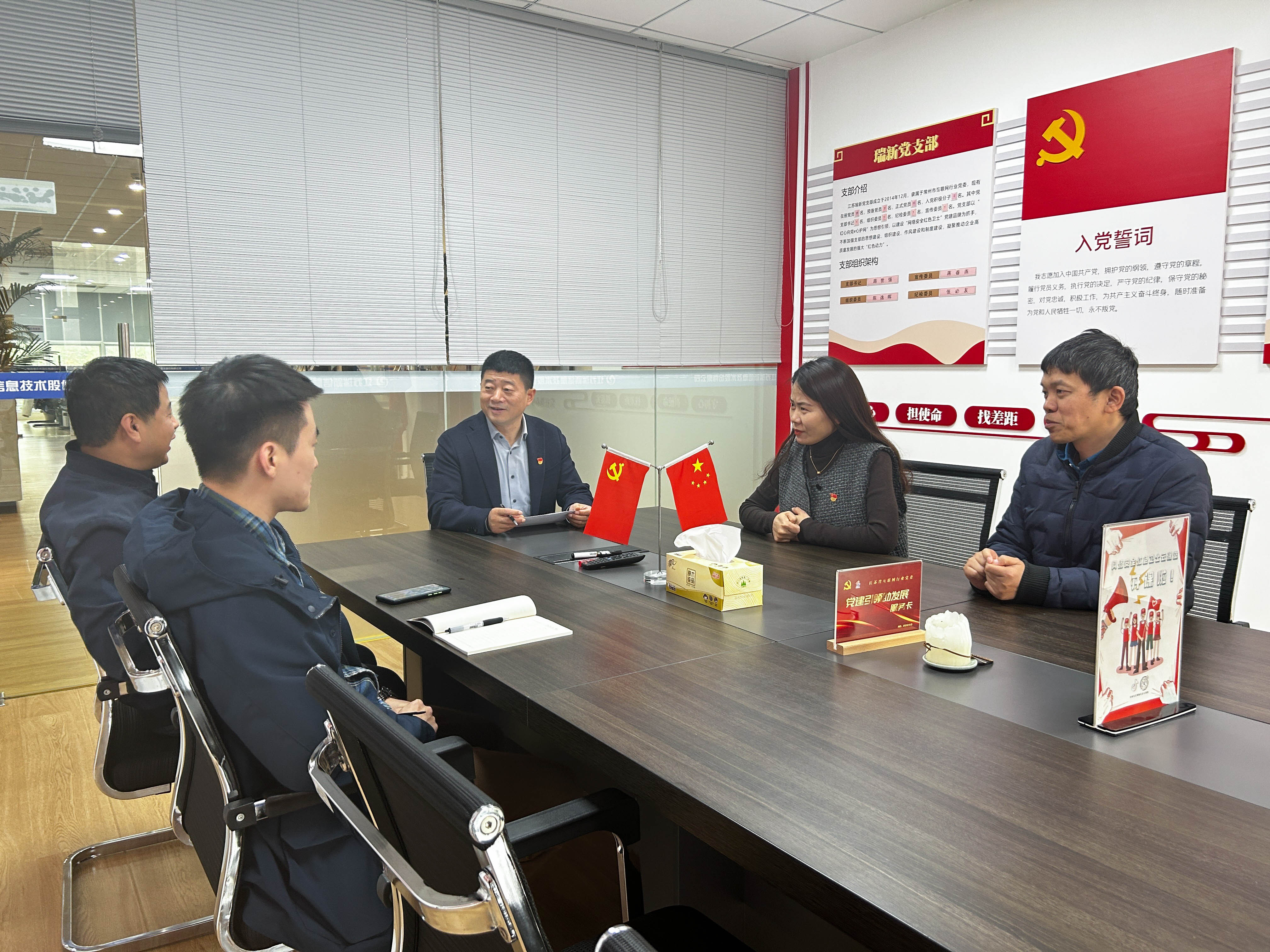 ? 11月23日下午,中共江蘇瑞新信息技術(shù)股份有限公司支部委員會召開支部委員會換屆選舉大會,全體黨員參加會議。